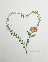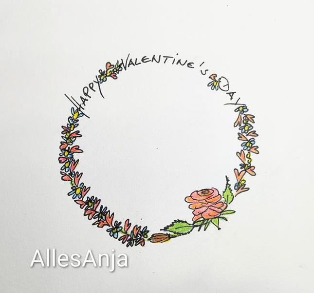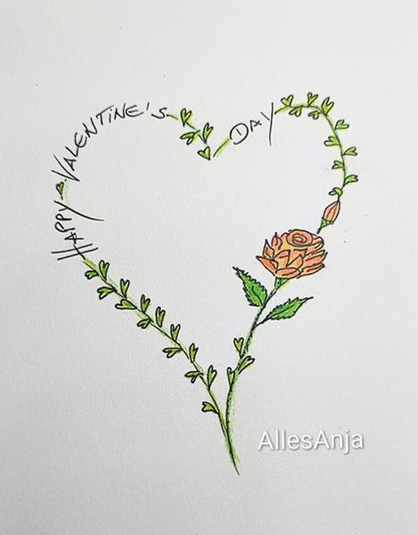 Februar - Valentins Tag Gruß... Tuschestift, Holzmalstifte.